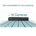 Rejestrator VIGI NVR1016H posiada 4 złącza: Audio In, Audio Out, VGA i HDMI oraz 3 porty: Ethernet RJ45 10/100 Mb/s i 2x USB (dla myszki, klawiatury bądź dysku zewnętrznego). Urządzenie dopełnia system monitoringu TP-Link, w skład którego wchodzą: wewnętrzne kamery typu turret (np. VIGI C400HP) oraz zewnętrzne urządzenia typu bullet (np. VIGI C300HP). Jest to zgodne ze standardem ONVIF rozwiązanie, które współpracuje z kamerami różnych producentów, sprzyjając kompleksowym systemom CCTV.
