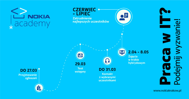 Obecnie w Krakowie trwa rekrutacja do Nokia Academy o profilu FPGA. Kurs zaczyna się 2 kwietnia i potrwa do 8 maja, zajęcia będą odbywać się w weekendy w formie hybrydowej – część teoretyczna online, warsztaty będą prowadzone w krakowskim Centrum Technologicznym Nokia.