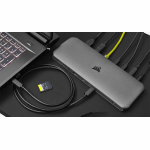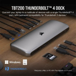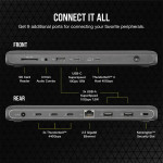 Oprócz portów Thunderbolt 4, stacja dokująca TBT200 posiada czytnik kart UHS-II SD wraz z gniazdami: Ethernet 2,5G, Jack 3,5 mm, 3x USB-A i USB-C. Dla przedostatnich gniazd można przesyłać dane z największą przepustowością 10 Gb/s. Istnieje opcja podłączania ekranów do stacji przy pomocy przejściówek: USB-C na DisplayPort bądź USB-C dla HDMI. Stacja z firmy CORSAIR obsługuje m.in. telewizory 4K oraz profesjonalne wyświetlacze. Starsze urządzenia są w pełni kompatybilne z TBT200. Stacja dokująca uwzględnia pracę narzędzia Thunderbolt Dock Utility firmy Elgato, które umożliwia wysuwanie wszystkich napędów jednocześnie oraz napędu SuperDrive firmy Apple. Jest to unikalny produkt, który pozwala obsłużyć najbardziej wymagającą armadę urządzeń multimedialnych.