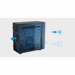 Przy małych i zewnętrznych wymiarach, obudowa NATEC Helix gwarantuje kompatybilność z płytami głównymi microATX i Mini-ITX. W połączeniu ze znaczną liczbą miejsc na dyski i dużą przestrzenią na kartę graficzną umożliwia to budowę wydajnego komputera przeznaczonego do pracy i szeroko pojętej rozrywki. Przewidziane zostały m.in. 3 miejsca na nośniki SSD 2.5", 1 slot dla HDD 3.5" oraz 2 miejsca hybrydowe na dyski 2.5"/3.5". Jest też obecna zatoka 5.25" np. na napęd optyczny DVD albo Blu-ray. Możliwość montażu karty graficznej o maksymalnej długości 33 cm jest wliczona, tak samo jak opcja montażu wieżowego chłodzenia procesora o maksymalnej wysokości 14,8 cm. Za wydmuchiwanie rozgrzanego powietrza, poza komputer, odpowiada m.in. fabrycznie zainstalowany wentylator o średnicy 8 cm, w tylnej części NATEC Helix, który można wesprzeć dodatkowymi wentylatorami o średnicy 12 cm - na przodzie albo z boku obudowy (wentylatory te należy samodzielnie zainstalować). Obudowa NATEC Helix z łatwością minimalizuje temperaturę zainstalowanych wewnątrz podzespołów. Usprawnia ona także codzienne użytkowanie, dzięki bogatemu panelowi przedniemu z aż 4 gniazdami USB.