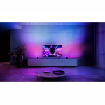 Znamienitej klasy wykończenie z matowego aluminium i kompaktowa konstrukcja czynią bez trudu z lampy telewizorowej Hue Play istotny element wystroju wnętrza, bez kompromisów w kwestii światła. Do jej zasilania wystarczy pojedynczy zasilacz, przy czym obok pojedynczych modeli Hue Play oferowane są także zestawy z 2 lampami. Zarówno pojedyncze opakowanie, jak i opakowanie 2-w-1 zawierają w sobie wszystkie najważniejsze akcesoria, a do sterowania wymagana jest aplikacja Hue wraz z podpiętym do lampy Hue Play dedykowanym mostkiem (sprzedawanym osobno). Ten stawiany w pionie produkt świeci się od razu po podłączeniu go do zasilania i można go zsynchronizować z telewizorami praktycznie bez trudu. Działa on tak samo, co każde inne światło Philips Hue i jest zarazem łatwy do wkomponowania w istniejące systemy oświetlenia inteligentnego w każdym domu, każdym biurze i pozostałych miejscach.
