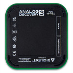 Zaprojektowany przez Digilent przyrząd pomiarowy Analog Discovery 3 zapewnia ustawialną częstotliwość zegara systemowego z przedziału 50-125 MHz. Występuje w sumie aż 16 pinów cyfrowych I/O o standardzie napięciowym LVCMOS 3,3 V. Skonfigurowane w roli wejść mogą działać z napięciami 5 V. Do wszystkich pinów cyfrowych I/O można podłączyć rezystory pull (nie inaczej). Przewidziano 2 różnicowe wejścia analogowe o zakresach: ±2,5 V i ±25 V oraz 2 wyjścia analogowe ±5 V. Analogowe kanały pomiarowe wyróżnia: rozdzielczość próbkowania 14 bitów i szerokość pasma 9 MHz. Częstotliwość próbkowania sygnałów nie przekracza 125 MS/s. Jest to wartość, która dotyczy też, w istocie, cyfrowych kanałów pomiarowych. Każdy z przytoczonych kanałów implementuje bufor o długości: do 32 tysięcy próbek. Dla wszystkich wejść analogowych przewidziane zostały sprzętowe filtry FIR. Dwa bufory: FM/PM i AM/SUM przechowują przynajmniej 2 tysiące próbek o 16-bitowej rozdzielczości. Dostępne są również 2 piny wyzwalające, do których to można podłączyć rezystory pull. W celu obsługi przyrządu pomiarowego Analog Discovery 3 należy skorzystać ze złącza, czy kabla USB-C. Wbudowane źródła zasilania są programowalne i wyprowadzają dwa napięcia: 0,5-5 V oraz -(0,5-5) V, przy wydajności prądowej około 0,8 A. Gwarantowana jest wsteczna kompatybilność z projektami Analog Discovery 2 - o ile nie korzystają one z wejść cyfrowych 1,8 V. Obsługiwany jest także zintegrowany odczyt napięć. Istnieją 3 cyfrowe pętle zwrotne: Scope, Wavegen i zasilania. Do tego wszystkie instrumenty pomiarowe są zawsze dostępne w zadanej konfiguracji - koniec z utratą dostępu do pinów cyfrowych I/O po przydzieleniu o wiele większej długości bufora dla generatora Wavegen.