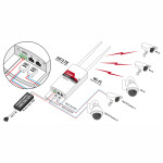 W celu obsługi nadajnika wystarczy wprowadzić kartę SIM ze stałym adresem IP - np. kartę simCAM. Po podłączeniu zasilacza DC 48V/2A każdy port otrzyma funkcję PoE o wydajności 30W/port. Większą liczbę kamer IP można dołączyć poprzez dowolny przełącznik sieciowy IP. Przemysłowy nadajnik GlobalCAM4.5G ma pakiety multimedialne, które odpowiedzialne są z miejsca za priorytetową transmisję strumieni audio i wideo przy małym opóźnieniu. Zapewnia to bardzo płynną transmisję obrazów i sterowanie kamerami obrotowymi PTZ, z opóźnieniami sięgającym do 400 ms. Wystarczą tylko "2 kreski" zasięgu LTE aby GlobalCAM4.5G zapewnił płynną transmisję obrazów z kamer Full HD. Ustawiając w kamerach IP kompresję H.265, do transmisji jednego obrazu FullHD wystarczy jedynie przepustowość: 1000-1500 kb/s na jedną kamerę. Umożliwia to podłączenie kilku kamer IP, a także zapewnienie optymalnej transmisji uwzględniając zapas przepustowości potrzebny np. w trakcie złych warunków pogodowych.