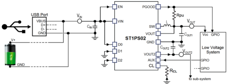 Ciekawą cechą jest również dodatkowe wyjście napięcia załączane wewnętrznym kluczem sterowanym sygnałem logicznym. Taka konfiguracja umożliwia dodatkową redukcję poboru prądu przez aplikacje poprzez całkowite odłączenie zasilania dla aktualnie niewykorzystywanych układów peryferyjnych.
