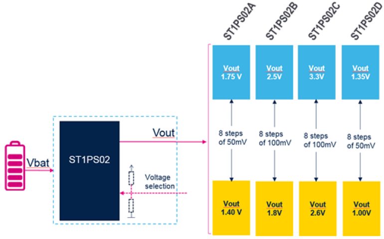 Układ charakteryzuje się elastycznością wyboru napięcia wyjściowego. Umożliwia to ich cyfrowy wybór: