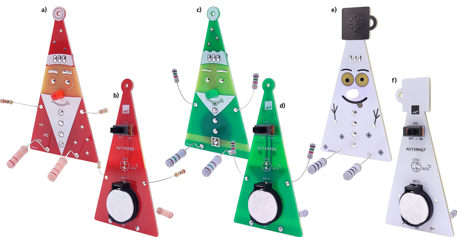 W zeszłym roku składaliśmy Bożonarodzeniowe drzewka LED (AVTXMAS1), Czerwone świąteczne ozdoby RGB (AVTXMAS3), Choinki LED RGB (AVTEDU640) i Bombki LED dla każdego (AVT3250). Tym razem do kolekcji własnoręcznie zbudowanych ozdób świątecznych trafią: Pomysłowy Mikołaj LED (XMAS5), Elf Pomocnik LED (XMAS6) oraz Wesoły Bałwanek LED (XMAS7).
