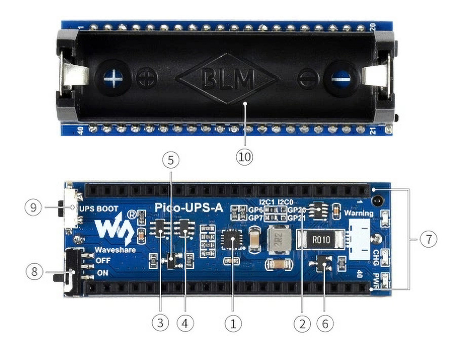 Pico-UPS-A to moduł UPS w postaci nakładki na płytkę Pico/Pico 2 [4]. Jest wyposażony w koszyk na pojedyncze ogniwo akumulatora Li-Ion typu 14500.