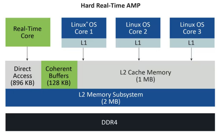 Spójna z cache matryca połączeń (bus matrix) CPU oraz elastyczny, 2-megabajtowy podsystem pamięci L2 odgrywają kluczową rolę w działaniu trybu AMP. Pamięć z korekcją błędów można skonfigurować jako 16-drożną pamięć podręczną L2 lub w trybie Loosely Integrated Memory (LIM) dla deterministycznego dostępu, a także jako spójną pamięć typu Scratchpad do obsługi współdzielonych komunikatów między hartami.