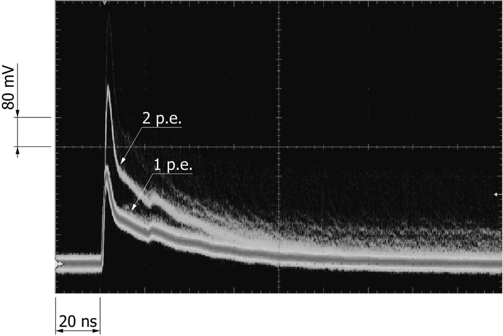 Co ciekawe, każda z komórek tak utworzonej macierzy jest zbudowana w oparciu o miniaturową fotodiodę lawinową, o czym warto pamiętać, gdyż fakt ten nie wynika wprost z nazwy detektora SiPM/MPPC. Przy wysokim napięciu polaryzacji w kierunku zaporowym efekt lawinowy generuje impuls o określonej amplitudzie, właściwej dla danego rodzaju detektora i – co ważne – niezależnej od tego, czy do piksela wpadł jeden foton, czy też kilka lub kilkanaście naraz. Każdy piksel generuje zatem impuls o tej samej amplitudzie przy detekcji przynajmniej jednego fotonu, zaś jeśli w tej samej chwili zadziała kilka pikseli, impulsy z całej macierzy zsumują się i amplituda wynikowego piku wzrośnie proporcjonalnie do liczby aktywowanych pikseli (rysunek 5).