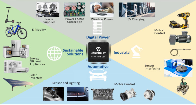 Microchip zapewnia również bezpłatne bloki urządzeń MPLAB do środowiska MATLAB Simulink, umożliwiając zoptymalizowane generowanie kodu na procesory dsPIC i inne mikrokontrolery Microchipa. Wciąż rozszerzane portfolio obejmuje gotowe do użycia projekty referencyjne, przeznaczone do sterowania silnikami w aplikacjach motoryzacyjnych, przemysłowych i konsumenckich.