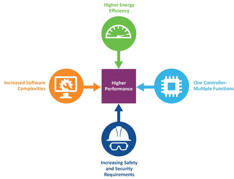 Integracja projektów oparta na modelach ułatwia szybkie prototypowanie i generowanie kodu, przyspieszając proces rozwoju złożonego oprogramowania. Nowoczesne mikrokontrolery oferują ponadto zoptymalizowaną architekturę odporną na błędy, co ułatwia zapewnienie integralności systemu, zwłaszcza w zastosowaniach o podwyższonych wymogach bezpieczeństwa – ma to niebywale istotne znaczenie, jeżeli docelowa aplikacja wymaga spełnienia wyśrubowanych norm bezpieczeństwa funkcjonalnego, przede wszystkim ISO 26262, IEC 61508 czy też IEC 60730. Akceleratory kryptograficzne, mechanizmy bezpiecznego rozruchu czy też kontroli dostępu w celu ochrony danych i własności intelektualnej odpowiadają za podwyższenie poziomu cyberbezpieczeństwa, zaś większa pamięć i moc obliczeniowa umożliwiają tworzenie wielozadaniowych aplikacji.