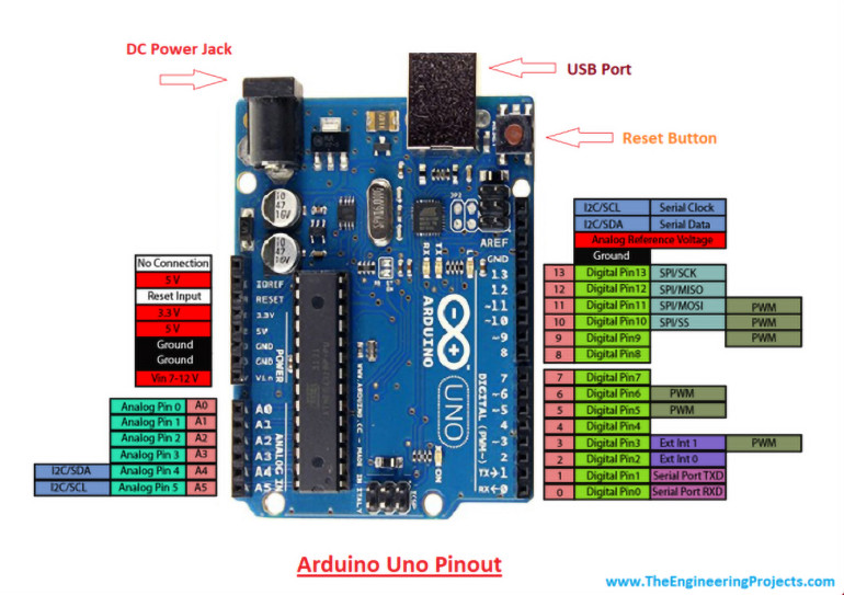 Arduino UNO jest bardzo cennym dodatkiem w elektronice, który składa się z interfejsu USB, 14 cyfrowych pinów I/O (z czego 6 pinów jest używanych do PWM), 6 pinów analogowych i mikrokontrolera Atmega328. Obsługuje również trzy protokoły komunikacyjne o nazwie Serial (szeregowy), I2C i protokół SPI. Powinieneś również spojrzeć na prezentację wideo na temat Arduino UNO - na końcu artykułu.