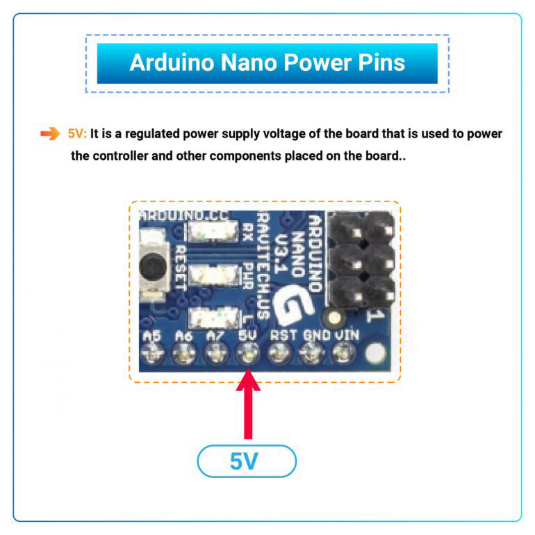Teraz przyjrzyjmy się szczegółowo wyprowadzeniom pinów Arduino Nano.