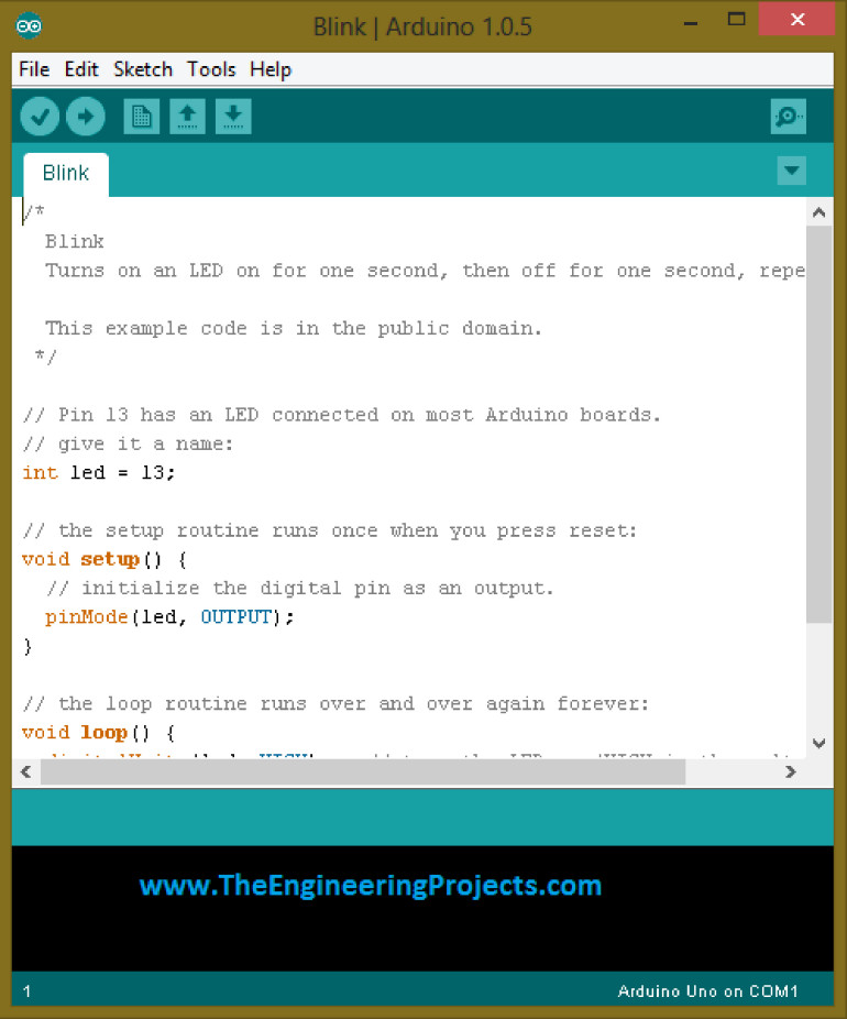 Uwaga: Ważną rzeczą do zapamiętania tutaj jest to, że, kompilator czyta pętlę ‘void setup()‘ tylko raz, a drugą pętlę, nazwaną jako „void loop()” czyta na okrągło.