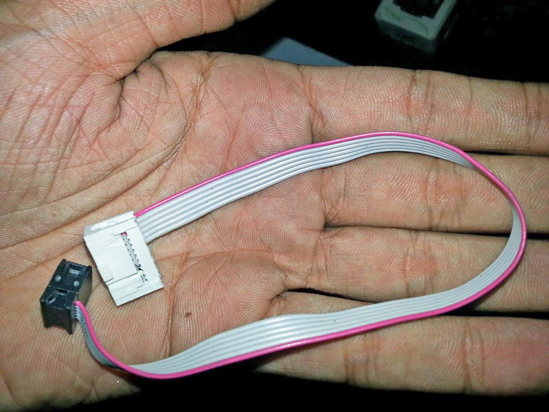 Otrzymany przewód Serial to SPI ma dziewięć pinów na końcu, który jest podłączany do płytki Pixy oraz sześć pinów na końcu, który jest podłączany do mikrokontrolera Arduino.