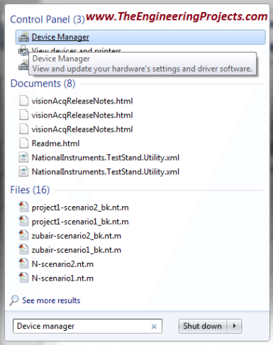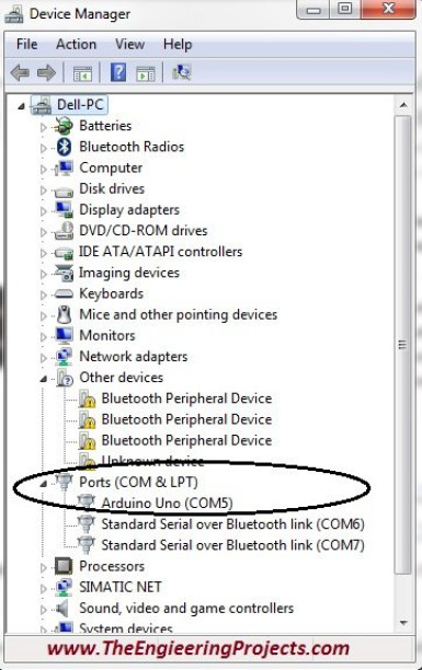 Podłączamy płytkę Arduino do komputera i przechodzimy do Wyszukaj –> Menedżer Urządzeń, jak pokazano na poniższym rysunku.