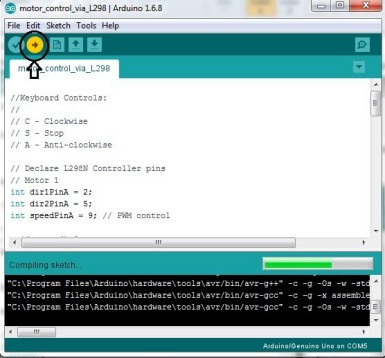 Teraz załadujmy kod źródłowy na płytkę Arduino UNO, jak pokazano poniżej.