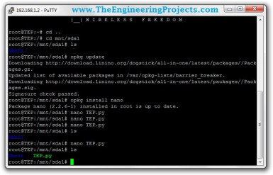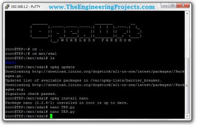 Następnie zainstalowałem nowy pakiet o nazwie nano. W celu zainstalowania go, użyłem polecenia "opkg install nano". Nano jest czymś w rodzaju notatnika w Linuksie.