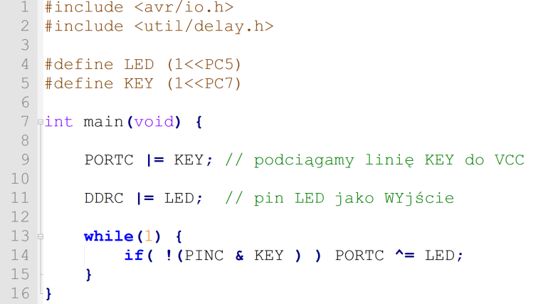 To najpopularniejszy język wysokiego poziomu, jaki znajdziemy na mikrokontrolery. Zawiera już sporą dozę abstrakcji, czyli nie operujemy wprost na rejestrach, a możemy skupić się bardziej na obsłudze poszczególnych zasobów. Na przykład ma zaimplementowane działania matematyczne (dodawanie, odejmowanie, mnożenie itd.) na różnych typach zmiennych, które służą do przechowywania danych.