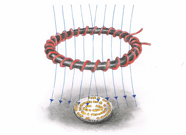 Charakterystycznym elementem dla wszystkich tego typu urządzeń jest okrąg lub dysk o średnicy kilkunastu lub kilkudziesięciu centymetrów, który możemy trzymać tuż nad powierzchnią gleby przy pomocy odpowiedniego trzonka i uchwytu. W tym okrągłym przedmiocie znajduje się “oko” naszego wykrywacza, czyli odpowiednia cewka indukcyjna lub zespół cewek.
