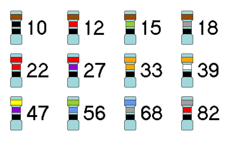 Na przykład, w popularnym szeregu E12 występują takie wartości:
