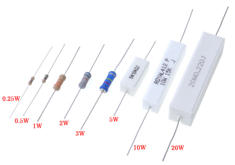 Moc rezystorów jest podawana w watach [W]. Im większa, tym większą jej ilość można na danym elemencie wytracić. Trzeba przy tym pamiętać o zachowaniu prawidłowego chłodzenia - jeżeli ciepło, na które zamienia się moc, nie będzie skutecznie odprowadzane, element przegrzeje się i spali.