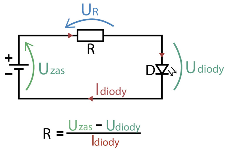 Rola rezystora w większości układów sprowadza się do ograniczania natężenia prądu. Jeżeli tak skonfigurujemy obwód, aby na rezystorze zawsze odkładało się napięcie o znanej i stałej wartości, to popłynie przez niego prąd o znanym natężeniu. Taka funkcja rezystora jest często wykorzystywana do zasilania diod LED, które wymagają określonego prądu. Wymaganą rezystancję szukanego elementu oblicza się z prostego wzoru:
