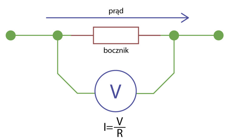 Rezystor możemy też wykorzystać jako konwerter prądu na napięcie. Korzystają z tego przyrządy zwane amperomierzami, zwłaszcza w nowoczesnej, cyfrowej postaci. Prąd, którego natężenie chcemy zmierzyć, przepływa przez specjalny rezystor (nazywany w tej roli bocznikiem), a przyrząd mierzy napięcie, jakie na nim powstaje. Po przeliczeniu, dokonanym przy pomocy prawa Ohma, możemy poznać natężenie prądu z naprawdę imponującą dokładnością.