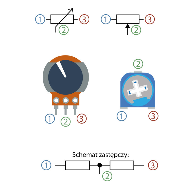 Potencjometru można używać również jako rezystora o zmiennej wartości. Wystarczy użyć wyprowadzeń 1-2 lub 2-3, nic więcej.