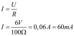 Przykładowo, jeżeli do baterii o U = 6 V podłączymy rezystor R = 100 Ω, to popłynie przez niego prąd I: