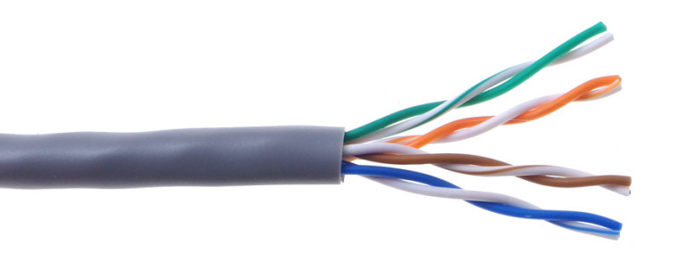 Tego typu kabel (zwany UTP lub LAN) zawiera w środku cztery pary żył, czyli w sumie osiem pojedynczych przewodów. Pary są skręcone ze sobą, co ma niebagatelne znaczenie dla całej transmisji. Przy przewodach ułożonych luźno, uzyskanie tak wysokiej szybkości przesyłu informacji oraz zasięgu, nie byłoby możliwe. Ich skręcenie też nie jest przypadkowe!