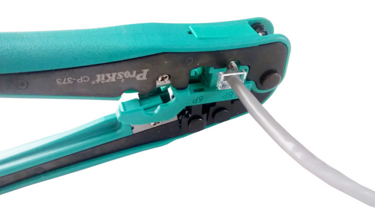 Poprawnie nałożona wtyczka wymaga zaciśnięcia. Można to zrobić specjalną, ręczną zaciskarką, której zadaniem jest równomierne wgniecenie złotych blaszek wtyku w poszczególne żyły. Koszt tego urządzenia nie jest wysoki, zaczyna się od kilkunastu złotych. Dużą zaletą użycia takiego przyrządu jest rozłożenie siły na wszystkie blaszki, co minimalizuje ryzyko pęknięcia wtyku lub niedociśnięcie którejś z blaszek.