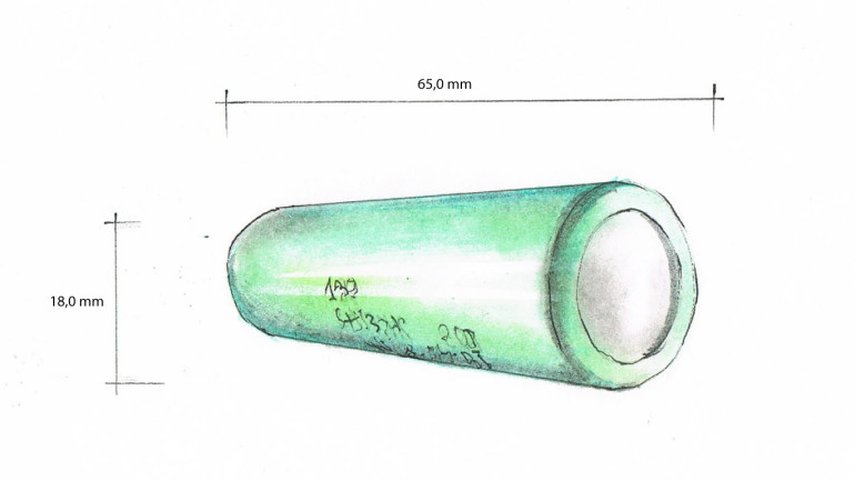 Ten zbitek cyfr stał się standardem wśród ogniw ładowalnych, a dokładniej - określa standardowy rozmiar ogniw litowo-jonowych. Te ogniwa mają kształt walca - jak typowe baterie typu “paluszek”. Pierwsze dwie cyfry - 18 - to przybliżona średnica w milimetrach [mm]. Drugie dwie cyfry - 65 - oznaczają przybliżoną długość. Ten drugi wymiar nie zawsze jest zachowany, o czym dalej.