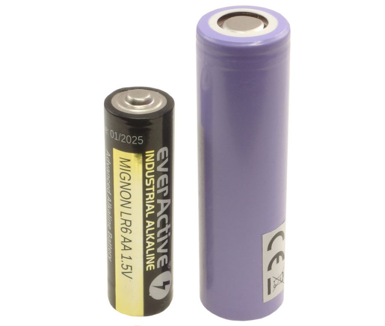 Dla przykładu, poniższe ogniwo ma wbudowane elektroniczne zabezpieczenie przed nadmiernym rozładowaniem, przeładowaniem oraz zwarciem. A to wszystko zintegrowane z “paluszkiem”, który dzięki tej elektronice stał się dłuższy o zaledwie 5 mm.