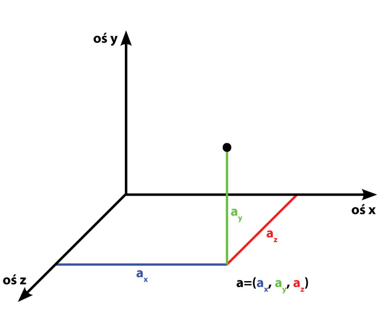 - w przestrzeni wymaga już trzech współrzędnych, na osiach X, Y i Z.