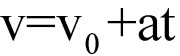 Z przyspieszeniem są związane użyteczne wzory, na przykład na szybkość w ruchu jednostajnie przyspieszonym, jeżeli nie występowała szybkość początkowa (v0 = 0)