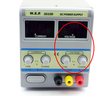 Niektóre zasilacze mają dwa pokrętła do płynnej regulacji napięcia: dokładnej (Fine) i zgrubnej (Coarse). To pozwala na precyzyjne ustawienie żądanej wartości napięcia, np. 3,3 V. Pokrętło regulacji ogranicznika prądu też niekiedy jest zdublowane, co ułatwia dokładne ustawienie maksymalnej wartości prądu wyjściowego..