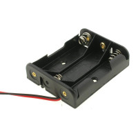 Baterie są w różnych rozmiarach, co ma też wpływ na ich cenę i pojemność. Najpowszechniejsze są baterie typu AA (inaczej R6), więc takich użyjmy. Lutowanie ich ze sobą byłoby niebezpieczne – przegrzana bateria może się wylać – poza tym utrudni to ich wymianę. Można kupić gotowe koszyki, w które wkładamy baterie. Mają wewnątrz druciki, które łączą baterie szeregowo. Na przewodach jest wtedy dostępna suma napięć z wszystkich włożonych ogniw.