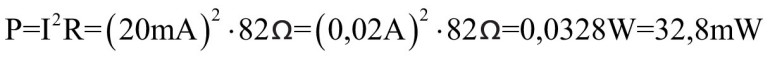 Konieczna była zamiana miliamperów na ampery, aby uzyskać zgodność jednostek. Wynik jest rzędu kilkudziesięciu miliwatów, a typowe rezystory mają dopuszczalną moc 0,25 W (=250 mW). Więc doskonale nadadzą się do tego zastosowania.