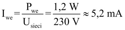 Wiedząc, że napięcie sieciowe wynosi 230 V, można łatwo policzyć pobierany z sieci prąd: