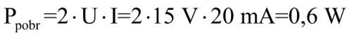 Pozostała jeszcze jedna kwestia: na jaki prąd dobrać bezpiecznik? Trzeba w tym celu wrócić do mocy. Założyliśmy, że przedwzmacniacz potrzebuje napięcia ±15 V i pobiera prąd około 20 mA. Dla mocy czerpanej z zasilacza nie ma znaczenia, czy napięcie jest dodatnie, czy ujemne, więc zapotrzebowanie na moc wynosi: