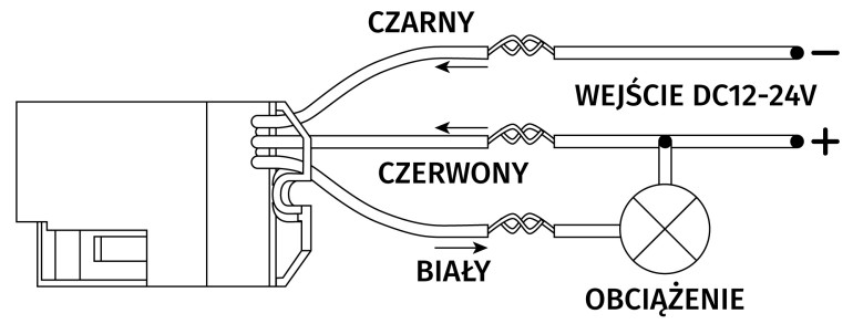 Pierwsze dwa przewody doprowadzają zasilanie do czujnika z elektronicznego zasilacza. Trzeci przewód z reguły jest przerywanym przewodem masy, czyli taśmy LED włącza się następująco: