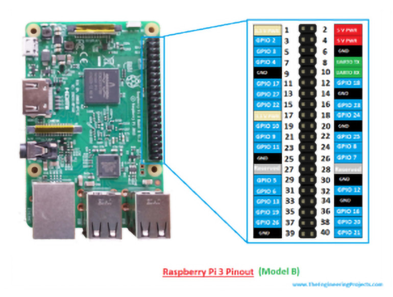 Pi 3 jest wyposażony w piny GPIO (General Purpose Input Output), które są niezbędne do utrzymania połączenia z innymi urządzeniami elektronicznymi. Te piny wejściowe i wyjściowe odbierają polecenia i działają w oparciu o programowanie urządzenia.