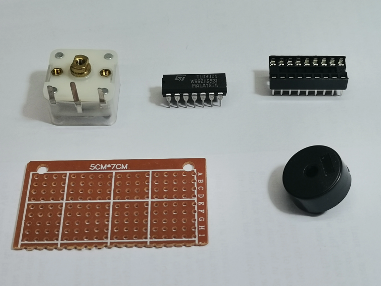 - Poczwórny wzmacniacz operacyjny TL084 ogólnego przeznaczenia (można też użyć TL074 lub TL064)
