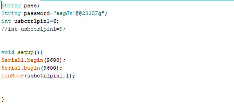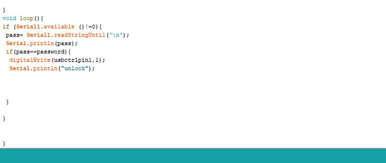 Potem utwórz funkcję loop(), która będzie sprawdzać przychodzące hasło i porównywać je z już zapisanym hasłem. Jeśli istnieje pomyślne dopasowanie między nimi, wtedy poda pin VCC USB do zasilania i urządzenie USB zostanie rozpoznane przez komputer, umożliwiając dostęp do plików w nim zawartych.