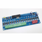 Zawiera on 16 wysokoprądowych tranzystorów MOSFET, mikrokontroler Atmega328, regulator 5 V itp. Bramka tranzystorów MOSFET IRLR7843 jest podłączona do pinów I/O układu Atmega328. Zaciski śrubowe służą do podłączenia diod LED i zasilania. Dodatkowe 2 przełączniki dotykowe i jedno złącze dla wejścia analogowego są przewidziane do dalszych eksperymentów. Zasilanie robocze od 12 V do 15 V DC, każde wyjście może sterować stałym obciążeniem prądowym 1 A (1 W do 12 W LED) bez chłodzenia i obciążeniem do 2 A z wymuszonym chłodzeniem powietrzem.