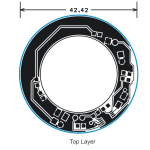 - Wymiary PCB 42,42 mm OD i 28 mm ID