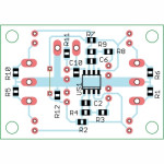 Układ prototypowy został zmontowany na jednostronnej płytce drukowanej o wymiarach 43×30mm, którą przedstawia rysunek 2. W odległości 3mm od krawędzi płytki znalazły się otwory montażowe.