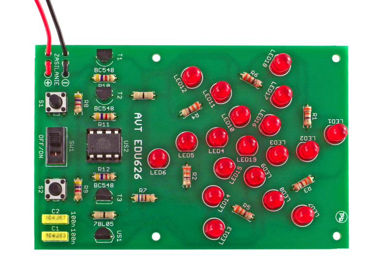 Zestaw DIY do samodzielnego zlutowania: w zestawie znajduje się płytka drukowana oraz komplet elementów elektronicznych