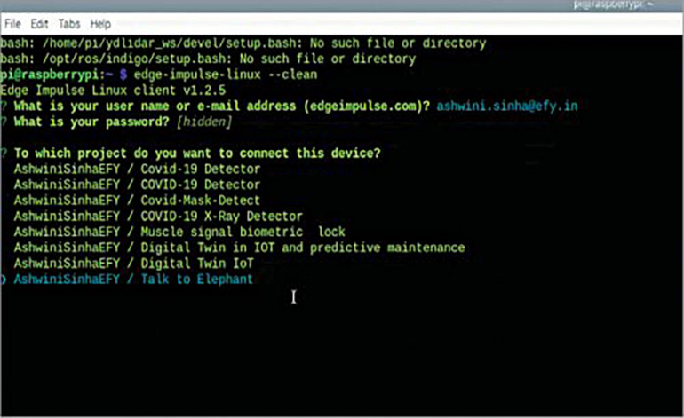 Potem, połącz projekt Raspberry Pi z Edge Impulse używając Edge-impulse-linux